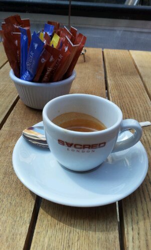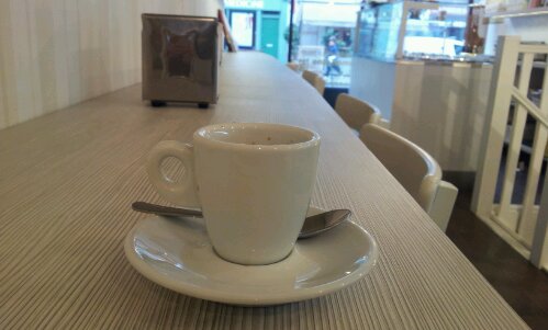Part coffee bar, part evening cocktail bar. Nice sandwiches on offer. Like Carluccios: fat focaccia and salamis. Expensive though, and only about 5 small tables and a bar at the window.
